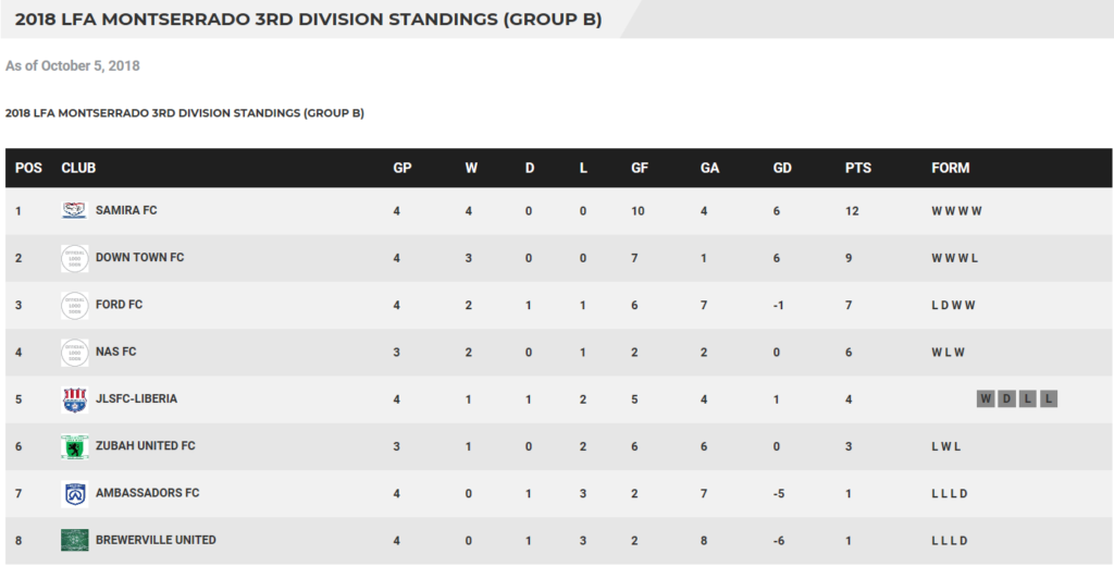 The disappointing loss drops JLSFC-Liberia to fifth on the eight-team table with only four points from four matches.